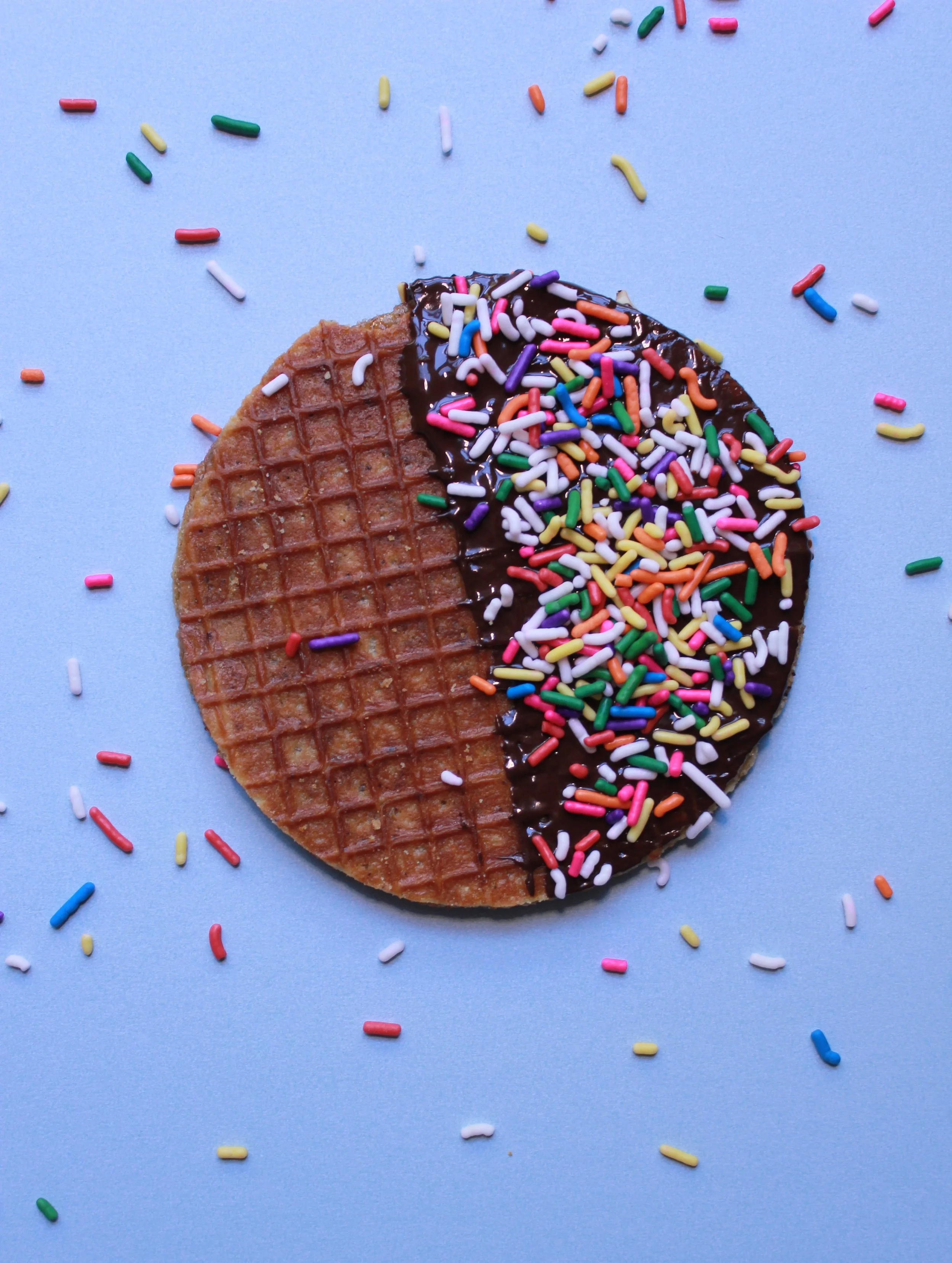 Freshly made on site, Dutch Stroopwafels with classic gooey stroop syrup (caramel-like filling), covered with warm chocolate sauce of your choice with fun and colorful toppings!